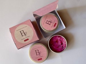 Our main product is a 2-in-1 balm made from fruit-based ingredients, like dragon fruit and virgin coconut oil. It works both as blush and lip tint, giving you a soft pink glow with a healthy and glossy finish.